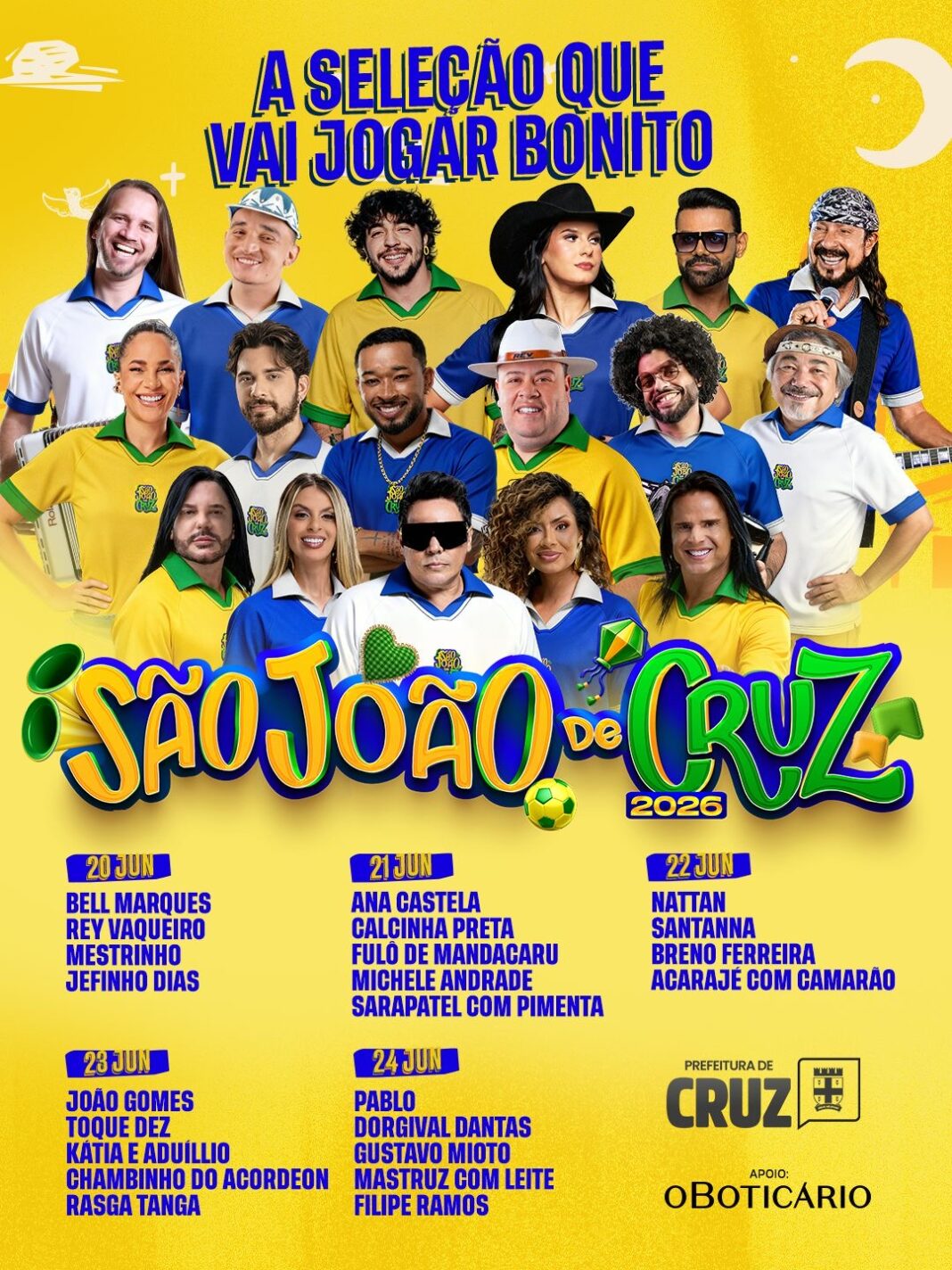 A espera finalmente acabou. A Prefeitura de Cruz das Almas revelou, nesta sexta-feira (10), durante um evento em Salvador, a grade completa de atrações para o São João 2026. Como o tema une a paixão pelo forró ao clima de Copa do Mundo, a festa reafirma, portanto, seu título de um dos destinos juninos mais cobiçados do Brasil.